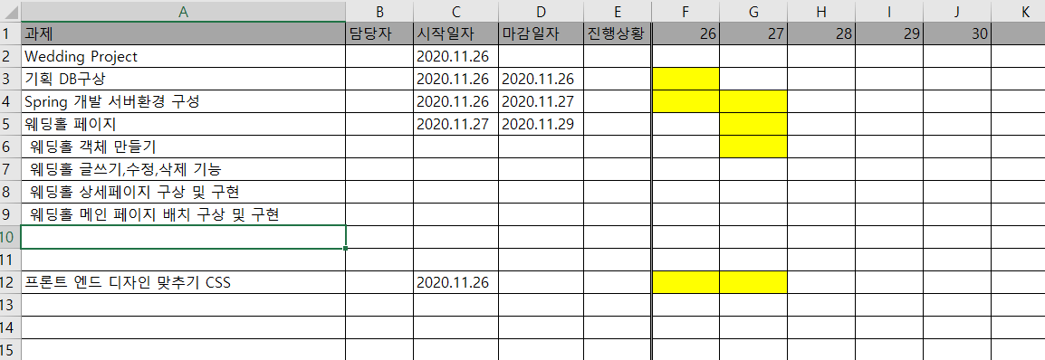 오늘 아침부터 저녁까지 이렇게 짜고 나서, 개발 일정을 좀 짜고 해야겠다 생각이 들어서 엑셀을 켰다.