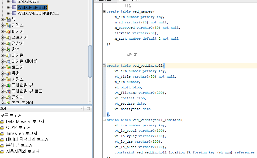- DB 구상 : 예식장, 스,드,메 각 카테고리당 하나씩 Table을 잡고, 회원을 일반회원과 사업자, 관리자로 나누어 관리하자