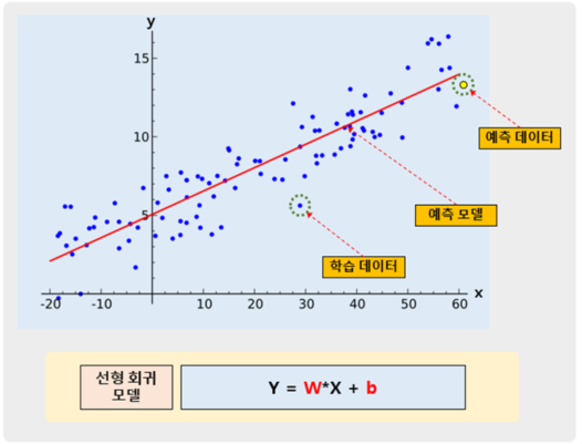 훈련 데이터로부터 독립변수들(X)과 종속변수(y)를 설정하여 독립변수의 변화에 따른 종속변수의 변화식 즉 회귀식을 이끌어내는 것이다.