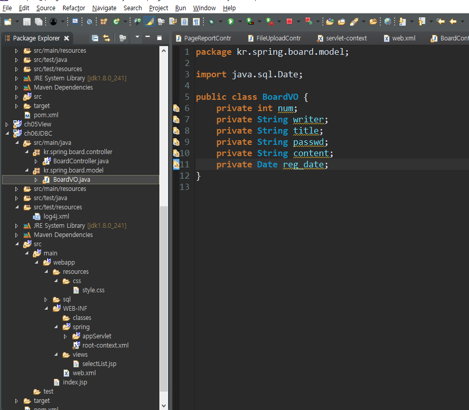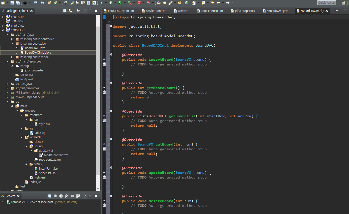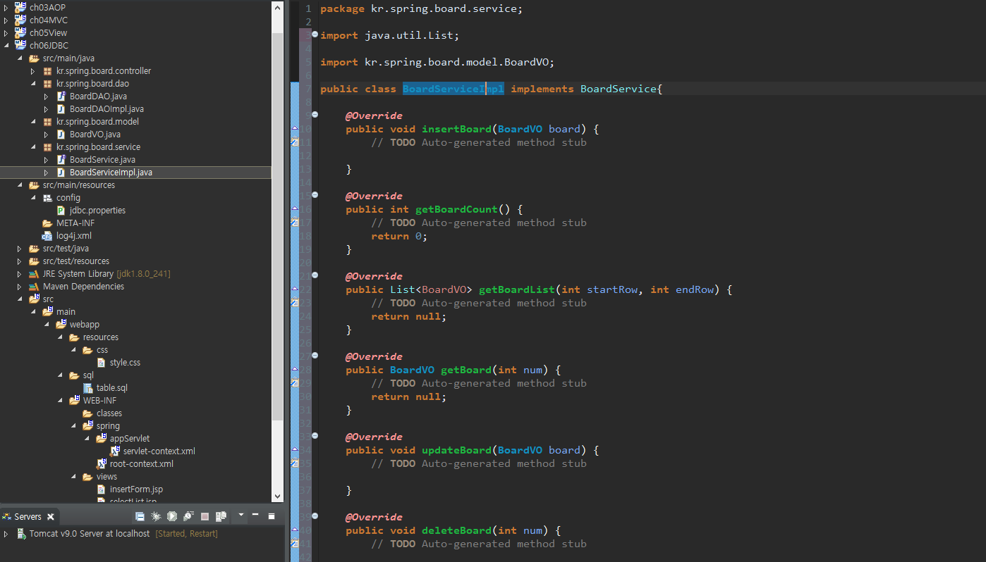 BoardDAOImpl class 생성 implements BoardDAO 로 불러오기