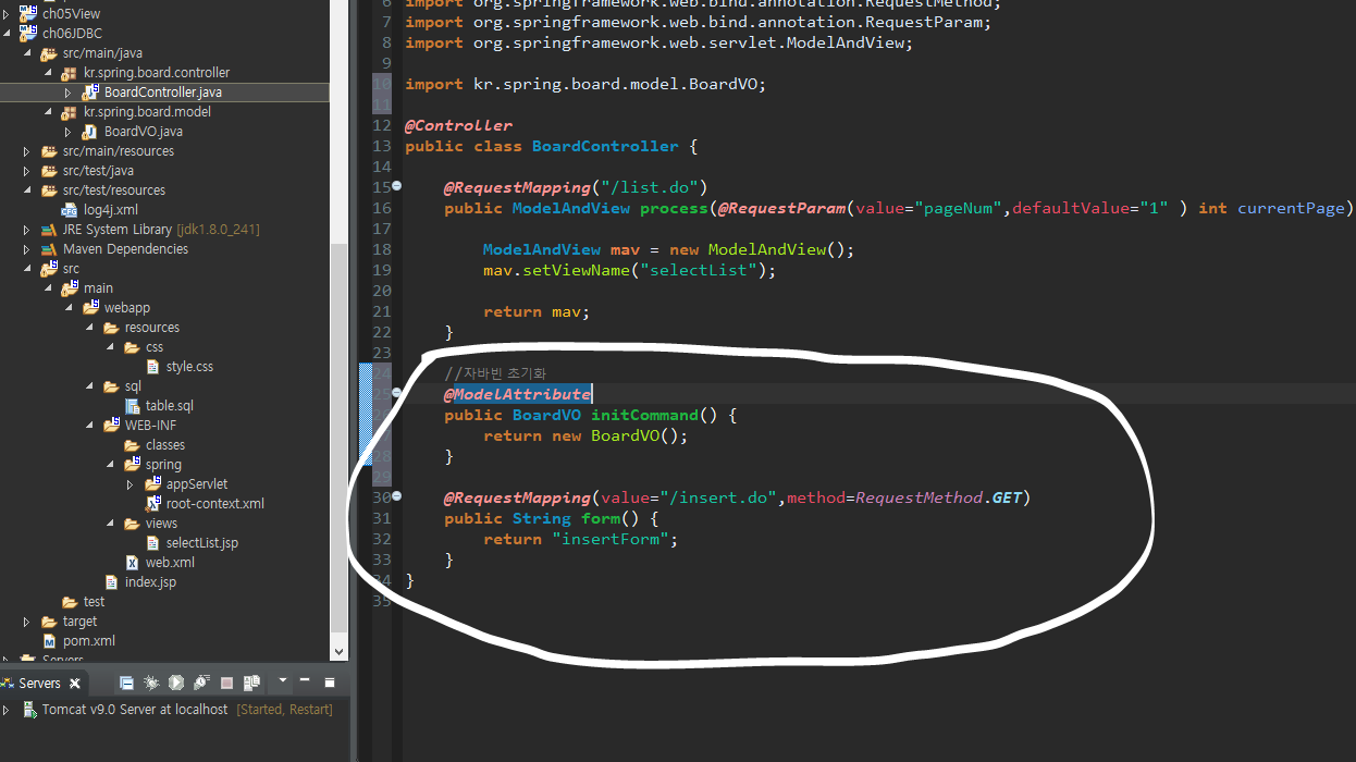 5) 컨트롤러에 자바빈 추가