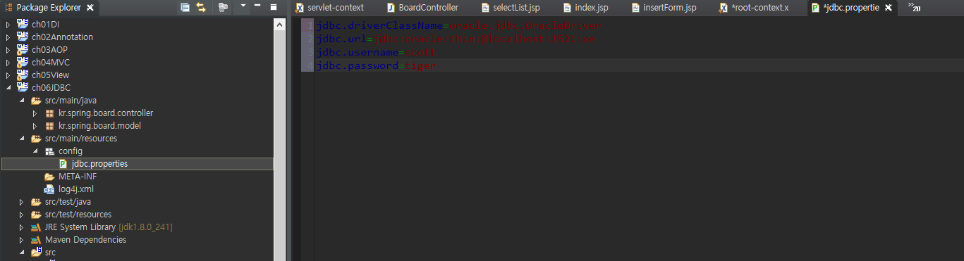데이터베이스 jdbc 연동 설정파일 생성