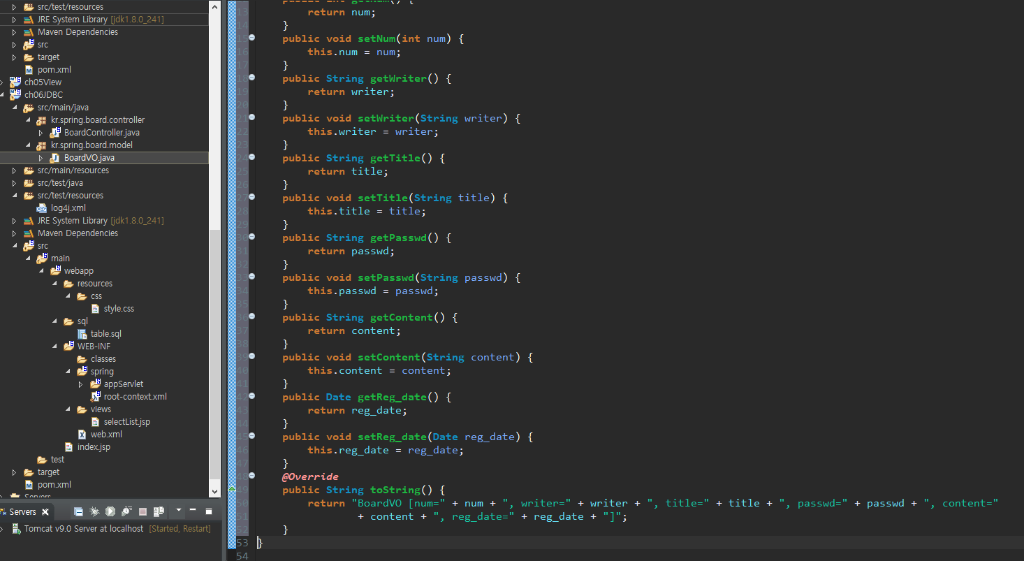 BoardDAOImpl에서 Database 관련 연동 작업