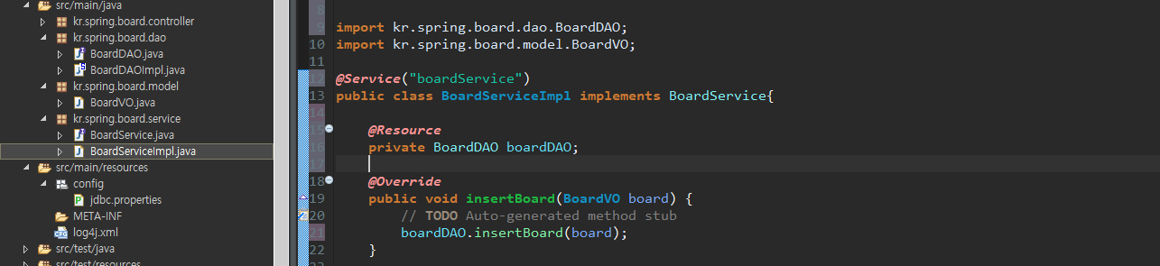 BoardServiceImpl에서 BoardDAOImpl 메서드 호출