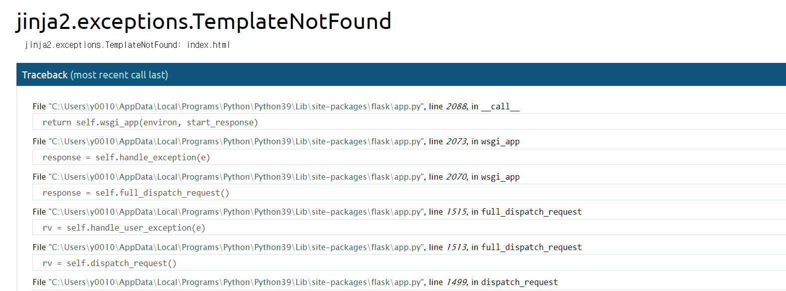 그렇게 바꾼 후 flask run을 해보면 아래처럼 에러가 발생한다.