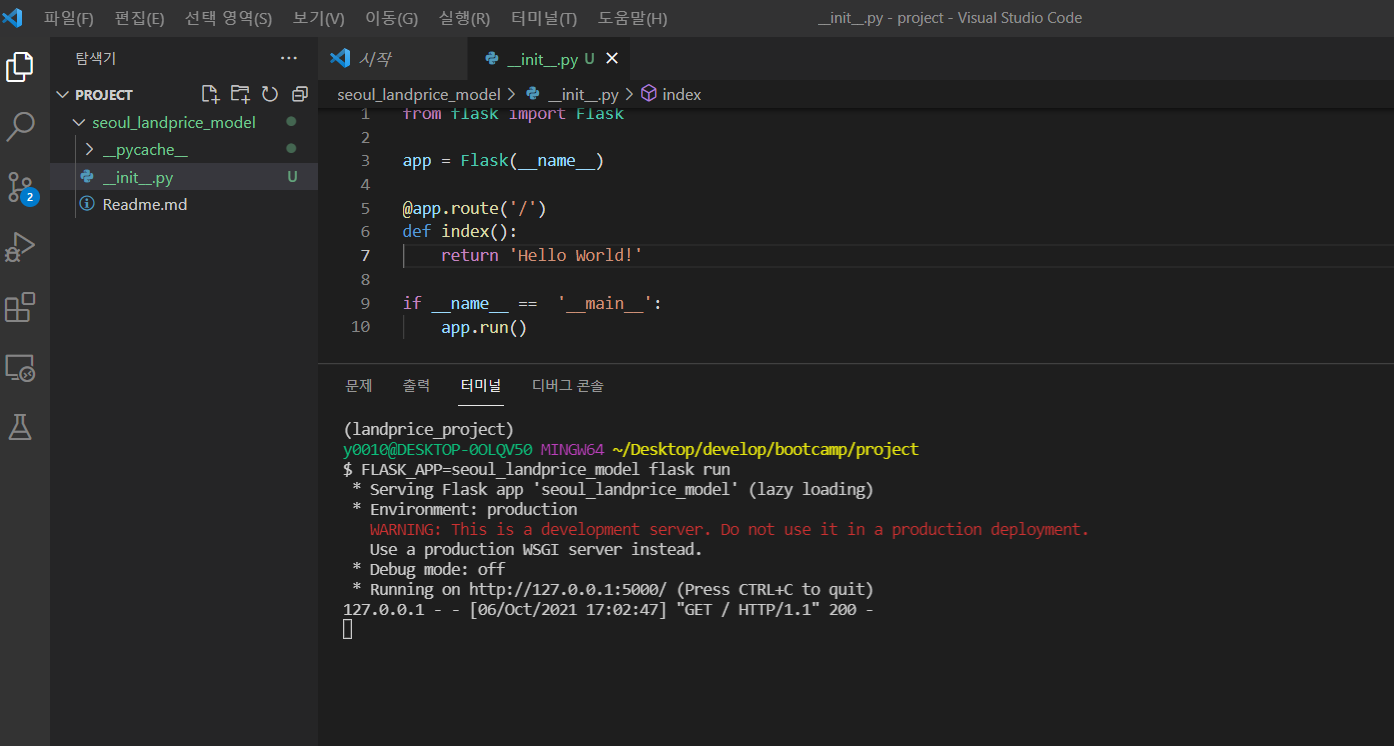 | 1.3) 서울시 지가 선형회귀모델 프로젝트 개발 환경설정 Flask Application Factory (0) | 2021.10.07 |