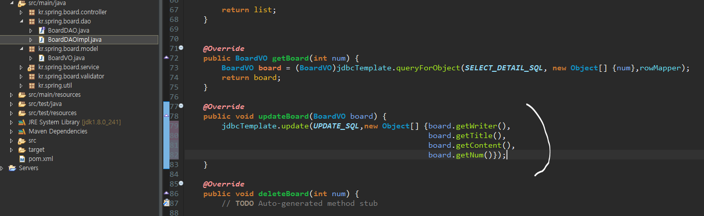 jdbcTemplate.update(UPDATE_SQL,new Object[] {board.getWriter(),