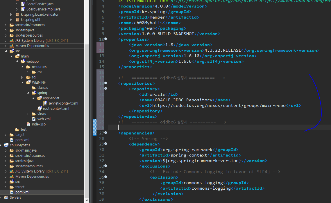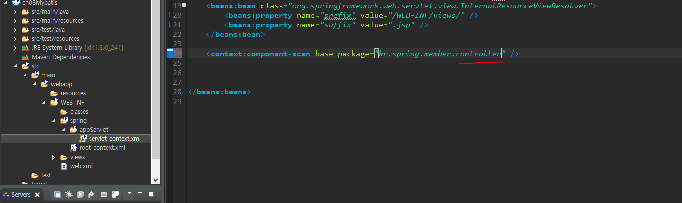 base-package = "kr.spring.board" -> "kr.spring.member"로 변경해야함
