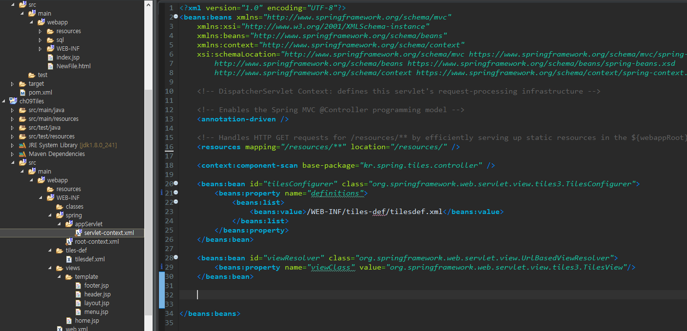 기존 viewResolver 제거 후 아래 새로 tiles 용 resolver 생성