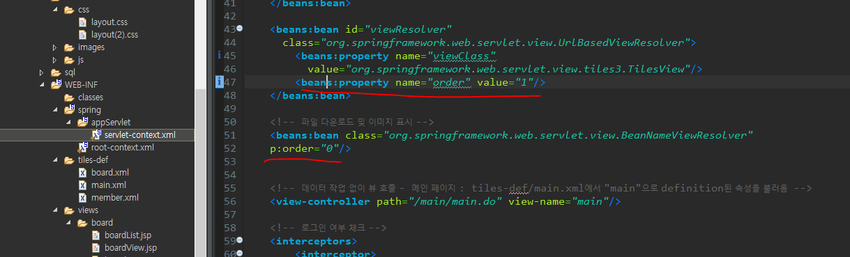 이미지를 보여주기 위해서는 ViewResolver가 두개가 필요하게 된다. 그리고 충돌을 방지하기 위해 순서를 지정해준다.