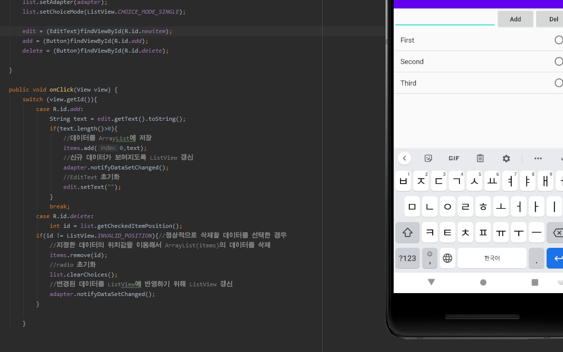 if(id != ListView.INVALID_POSITION){//정상적으로 삭제할 데이터를 선택한 경우