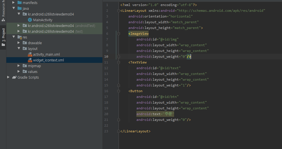 | Android Studio s23ListViewDemo01 (배열을 이용한 ListView) (0) | 2020.07.02 |